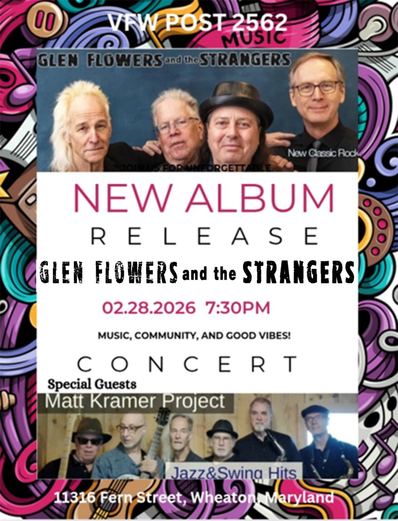 2/28/2025, 7:30 to 8:30PM, Wheaton VFW, Glen Flowers and the Strangers w/special guests Matt Kramer Project