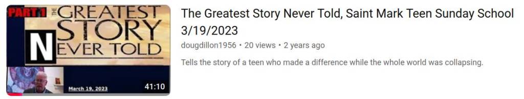 That is mostly filled with the Saturday evening bible studies I’ve doing giving at St Mark’s Orthodox Church for several years.